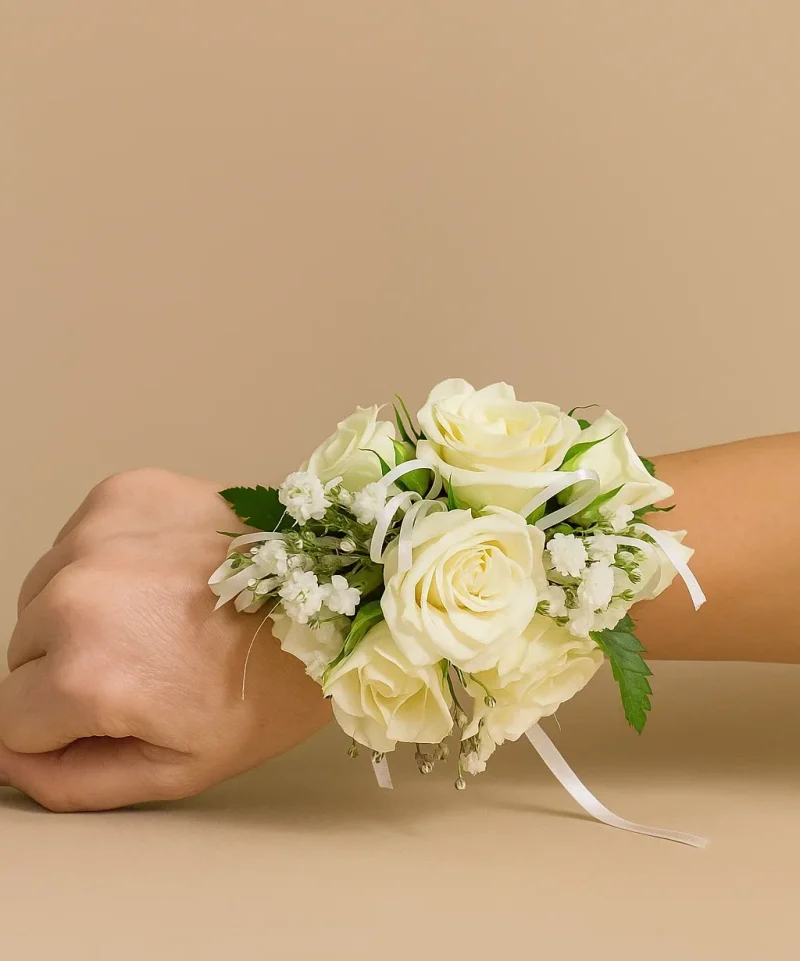 Our white wrist corsage Gold Coast collection is designed to bring elegance and refinement to your special occasions.